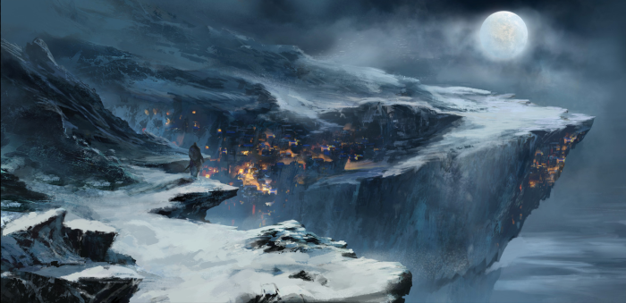 A region of razor-edged ice mountains and grinding glaciers that drift through a cold, shifting sea under Kostchtchie’s influence. The sea itself groans with sunken structures and imprisoned souls. The Glacier Citadel is Kostchtchie’s base of power, a fortress carved into an immense glacier that shifts between two great peaks. The Winter Warlords architects - skilled giants all - must constantly rebuild sections of this fortress as portions of it crumble away.