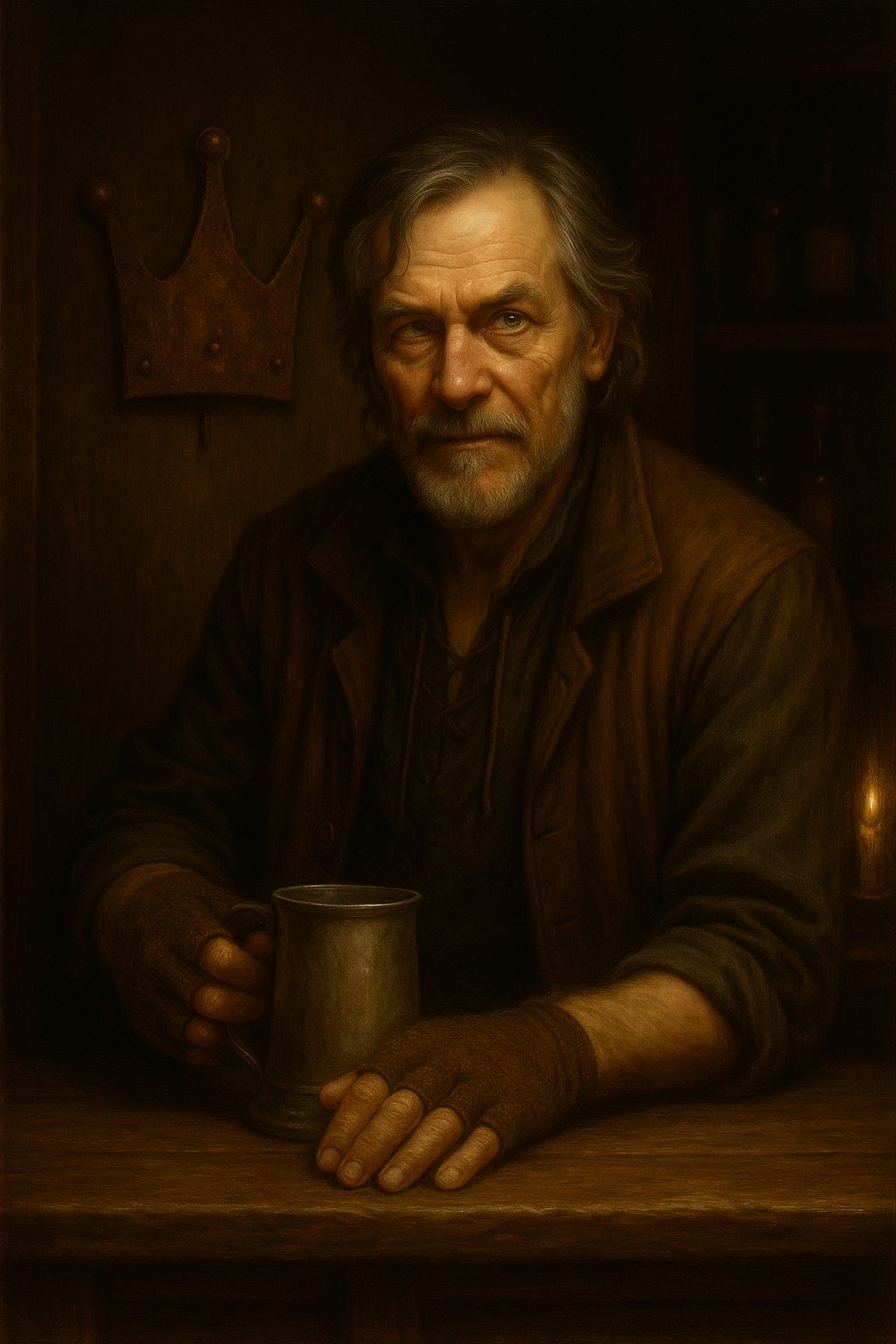 Claims to have once been a court historian, or maybe a spy—no two tales are the same. Was banished from “the court of seven mirrors” (a place no one can find on any map). Opened The Rusted Crown with a coin that still hums if you hold it long enough.
