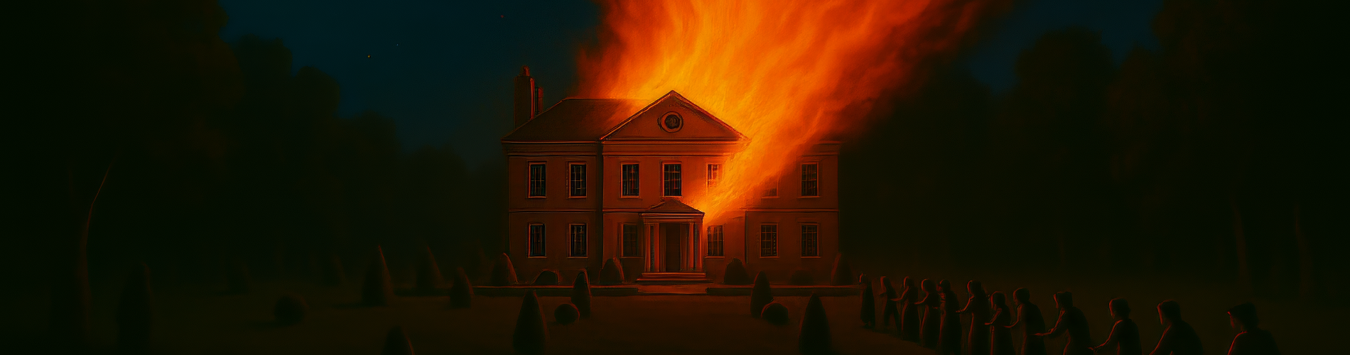 Baroness Sandibar stood in the west hall, her night-robe singed, a curved sabre in one hand. Behind her, Lord Ulden lay still upon the flagstones. Beyond the smoke, she could hear her children’s cries—three voices, already fading.