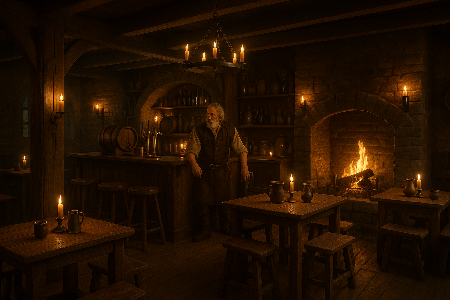 - Gallen Varro (Barkeep): Former watchman—eyes like a hawk for trouble, ears ever open to new ideas.