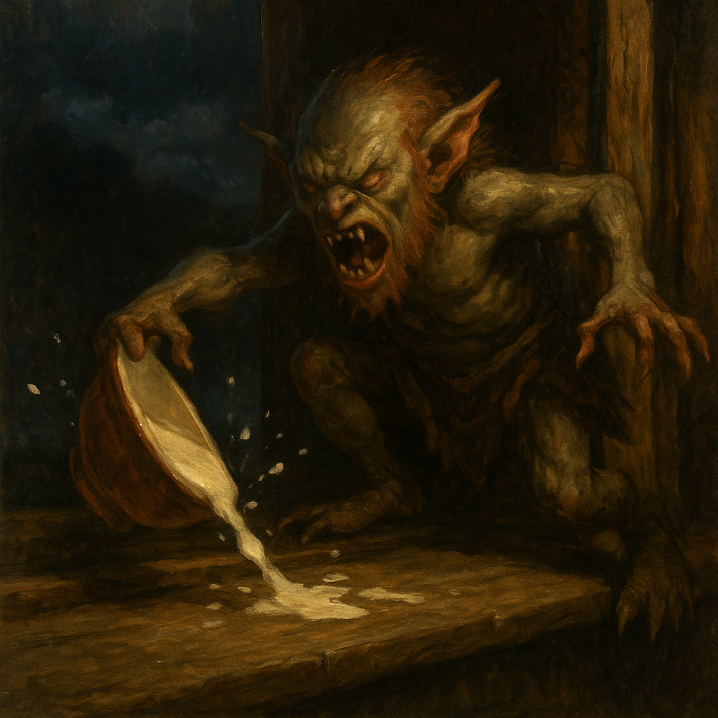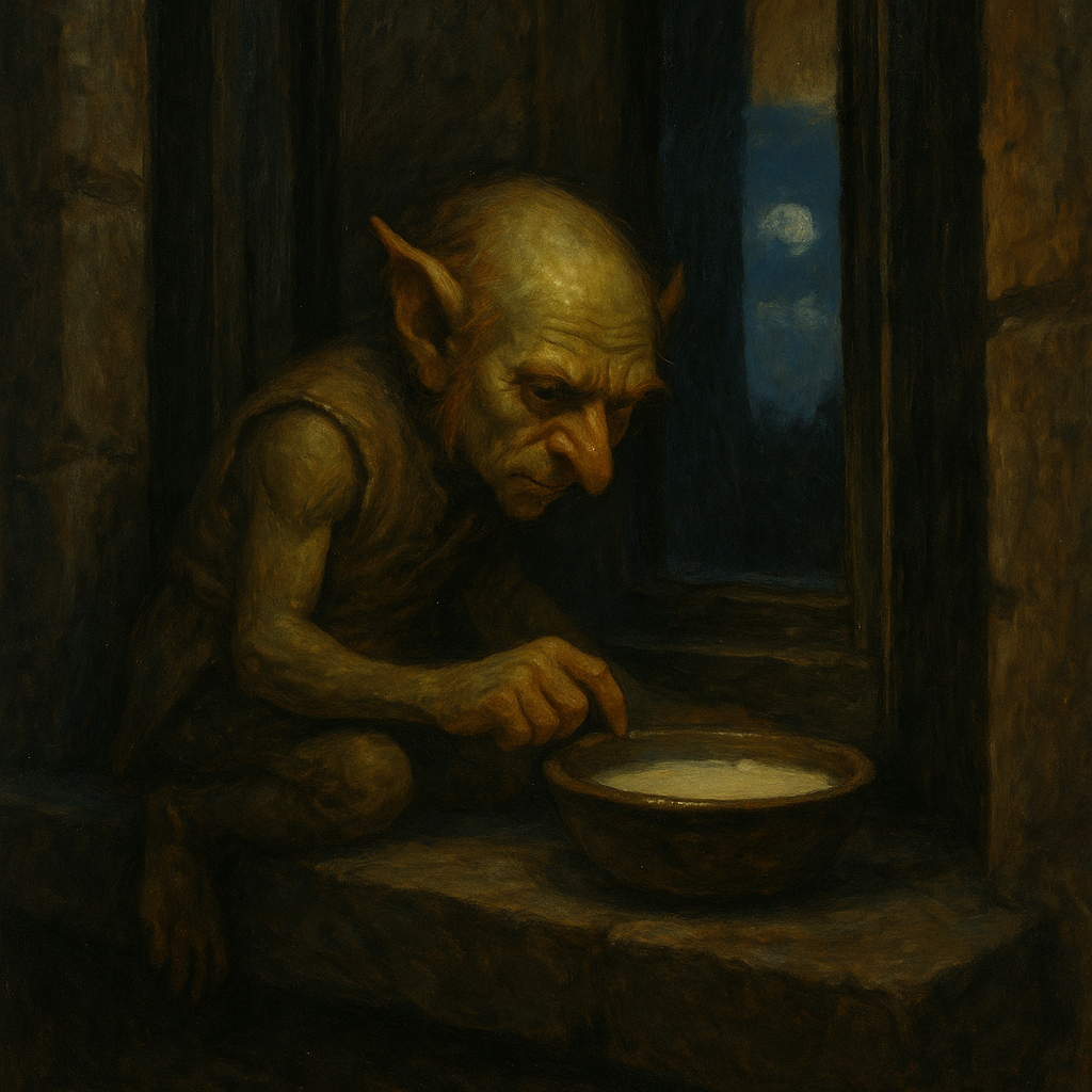 The ritual is quiet, often wordless. At nightfall, shortly before locking up the home, a member of the household places a small offering near a hearth, window, or doorstep, any boundary between the home and the wild. The act must be done with genuine intent; merely going through the motions is said to offend the Broonie more than being forgotten outright. The container should be clean but plain. The offering, simple, fresh, and accessible. Once placed, the bowl or plate is left untouched until sunrise. If the contents are gone by morning, it’s seen as a sign of good favor. If they remain, especially if they appear spoiled or disturbed, it may indicate offense has been taken. In such cases, families often sweep their entire homes, leave fresh offerings three nights in a row, and light a small “welcome taper” candle to invite the Broonie back in peace. Some rural towns have adopted a weekly communal offering, a shared feast at the edge of the village, left out beneath the stars for any wandering spirit to enjoy. It is a blend of hospitality and dread. Not out of fear that the Broonie will bring death, but that they might take something subtler, luck, health, warmth in the bones, love between kin. Things only missed once they are gone.