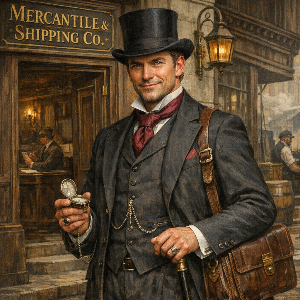 To Everwealth, business dress is the look of inevitable ascent. These are the people who finance wars, own ships that decide famine or feast, and fund colleges, guilds, and sometimes coups. Nobles sneer at them publicly and court them privately. Workers resent them but recognize them as closer, more dangerous gods. To dress this way is to declare: