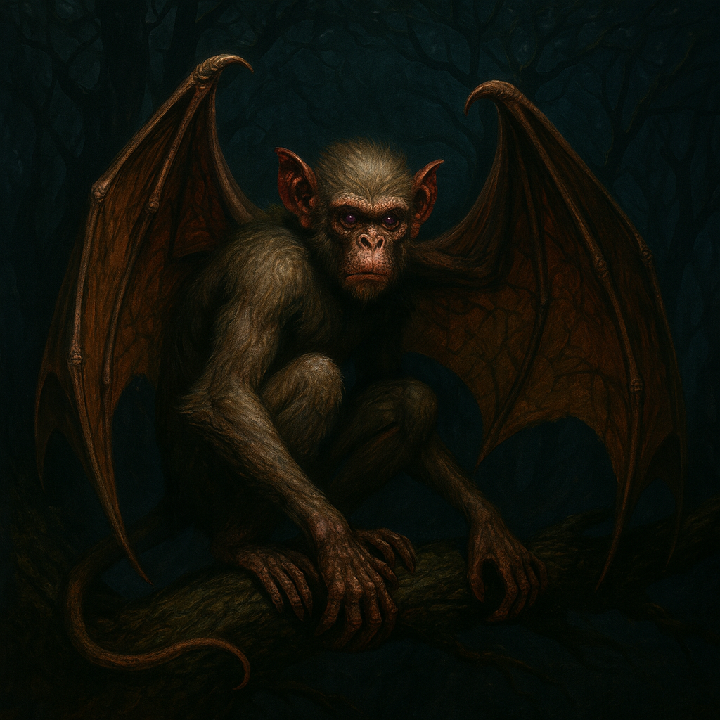 The Chiropox is a grotesque nocturnal predator that haunts the deep, undisturbed heart of The Grandgleam Forest; In recent years as-well, many regions reportedly in northern Kathar, adapting well to the tropic southern climate and expanding rapidly, a scourge of many to come it is feared. A hybrid terror born of forgotten laboratories razed by The Great Schism, freeing them into the wild from their captivity, this creature combines the worst traits of bat and ape, furred monstrosity, eerie intelligence, and a taste for blood. Winged, thumbed, tailed and cunning, the Chiropox now roams the moonless canopies of the western woods like a whisper with teeth, preying on the careless and the wounded be they folk or beast. Rumors, speak of the beast's mimicry, their packs, and the chilling laughter that echoes through the woods at dusk, not laughter born of joy, but an imitation of it. Those who seek them rarely return whole, if at all.Basic Information