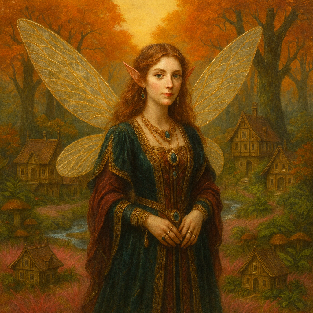 The Faerie are foot-tall folk of ferocious spirit and flickering grace, denizens of The Otherworld’s moss-slick branches and crystalwater riverbanks. Known for their fierce speed and dazzling presence, they are described in battle as "ballerinas with daggers for feet," streaking through the mist on wings that hum like harpstrings. When not at war, Faeries are symbiotic craftsfolk and light-hearted philosophers, raising birds alongside bees and singing to their rootbound crops. Their glimmering hair and wings emit a crackling trail of radiant particles, known as Faerie Dust, that reflects light like crushed gemstones. This substance, once harvested illicitly for alchemical flight tonics through trafficking or the horrific 'Faerie Slaughterhouses' is now forbidden to trade under pain of execution, as it requires the cruel dismemberment of a living faerie. Despite their childlike size and whimsy, Faeries are neither harmless nor helpless. They live by code and kin, and are known for both explosive rage and boundless joy. Skilled woodworkers, armorers, and jewelcrafters, they weave rings and riding harnesses for raccoons, sleds for squirrels, and necklaces like sunlit blades of silk. Whether frolicking or fighting, they never move without purpose. Faerie culture demands balance, between work and wonder, ferocity and beauty, nature and craft. Their reclusive lives amid giant mushrooms and gnarled oaks may seem quaint, but legends claim it was the Faeries who taught the first druids to speak with animals, and that their songs once steered the wilds themselves.