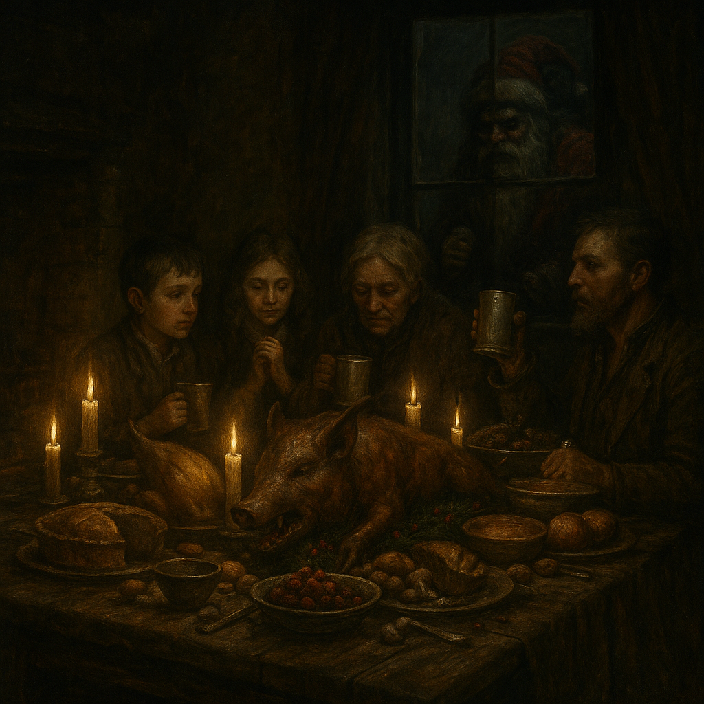 - The Lighting of the Hearth: A central fire is lit in each household or town square, meant to guide Sahnta Klaus through the darkened skies.