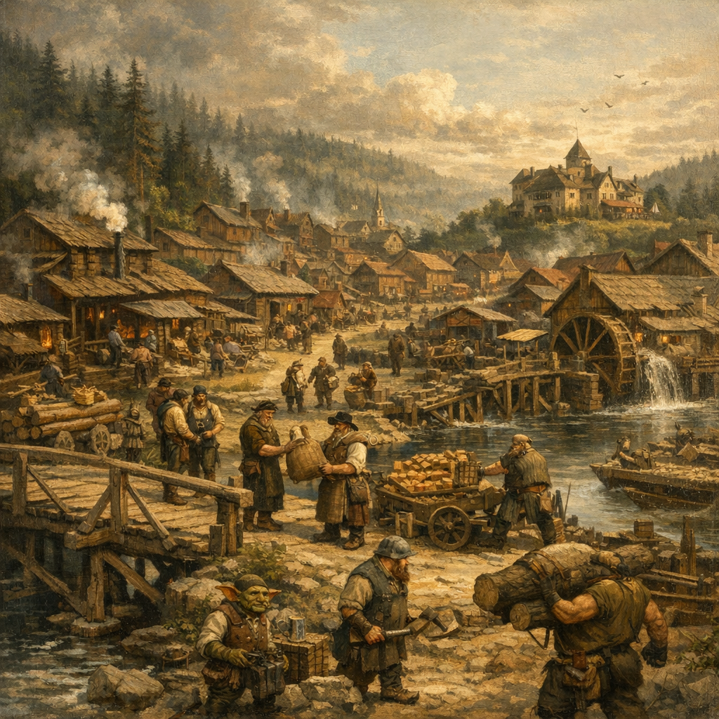 - The Timberman’s Lodge - A powerful guild overseeing logging operations, pricing, and exports. They ensure fair wages and prevent overharvesting.