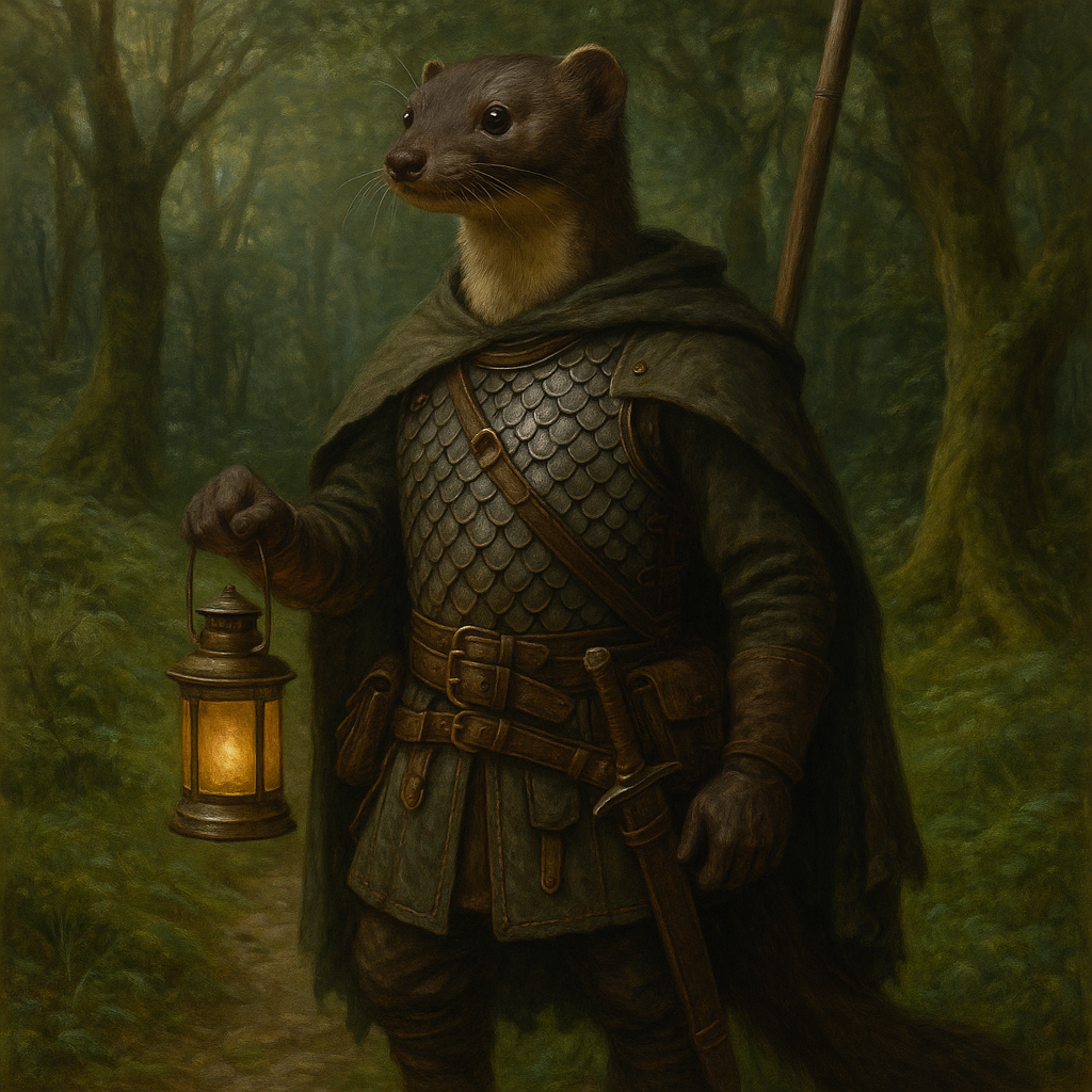 They giggle and vanish between shadows like smoke through a sieve, and when they strike, you’ll never see the teeth until they’re red. The Mustelish are a curiously plucky indigenous race of sapient mustelid-folk, possessing lithe, flexible frames built for bounding through forest canopy, diving into streams, or vanishing between rocks with peerless acumen. Aside from being visibly taller than most humans, they are not physically imposing like the Orcish of similar height, the Mustelish are known for a raw, kinetic grace, and swift, biting minds to match. Their society is rooted in small bands within settlements or tribally-affiliated hunting camps scattered across The Grandgleam Forest and, historically, the Elfese region once known as Chikara before Everwealth took it's place. Their long familiarity with the land, and its many cycles of war, rule, and ruin, has made them masters of survival and opportunism. Unaligned in both historical empires and modern politics, the Mustelish have thrived through self-reliance, cooperation, and uncanny evasion. Some view them as tricksters, others as noble loners, but none deny the sting of their spears or the ingenuity of their traps. Their contributions to hunting, toolmaking, and forest craft are foundational to Everwealth’s survivalist traditions, and yet they remain elusive, seen more often in rumor than in city markets.