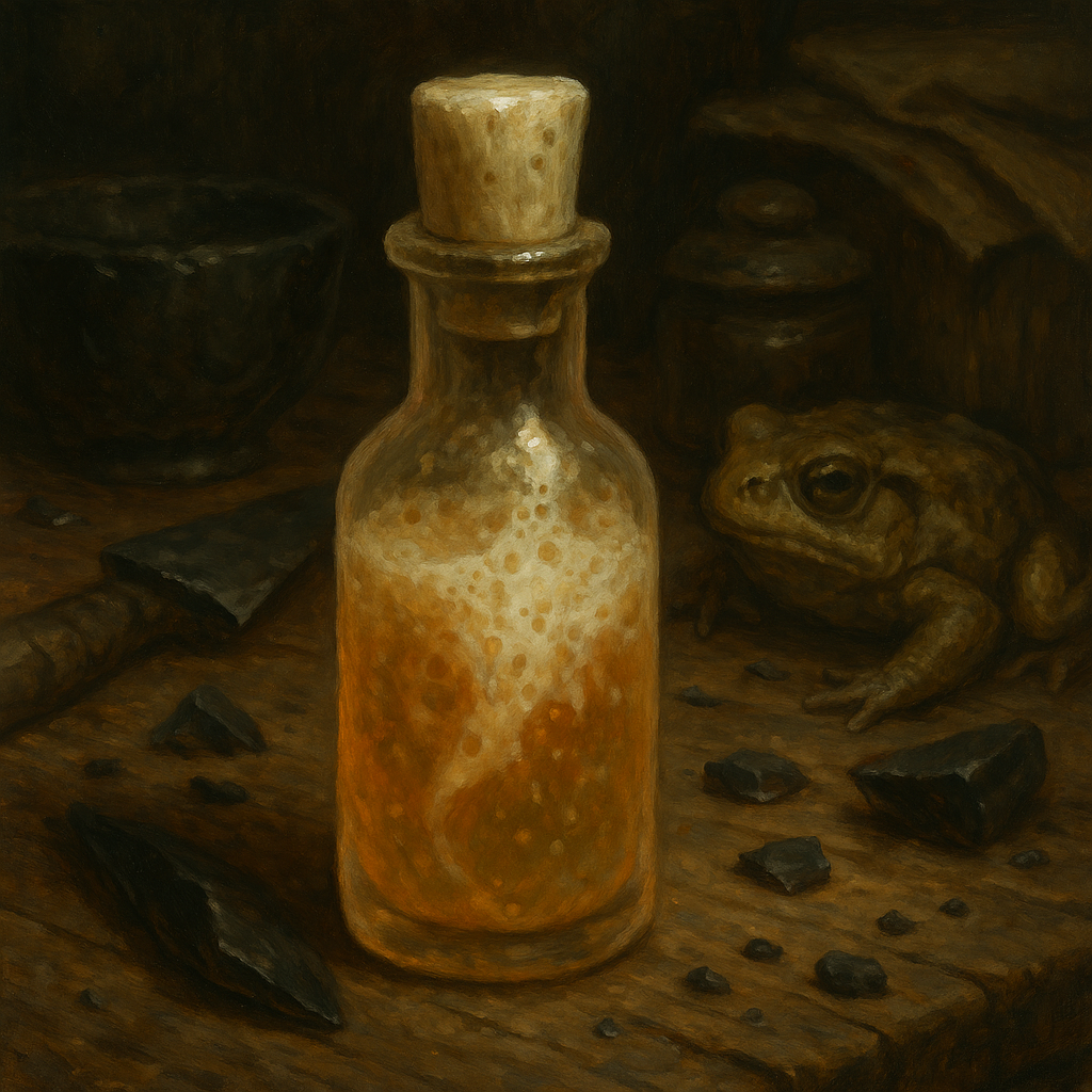 Ossivorax poison, is the pinnacle of poisoncraft in Everwealth, among the few long-standing successes of our world, an alchemical product of The Hungering Marsh that has claimed more lives than any blade or arrow could hope to do as-potently. Pungent, orangish-white, and disturbingly transparent, this triple-vector toxin kills by touch, ingestion, or inhalation. Born from the eponymous bone marrow and skin mucus of the Marrowtoads (Bufonidae ossivorax), a toxin that's potency is matched only by the danger of harvesting it. Handling without full alchemical precautions is a death sentence, and even the fumes of its preparation have ended master poisoners mid-breath. For centuries, assassins, marsh smugglers, and warlords have paid fortunes in gold or blood for a single phial, its victims found with their eyes wide and unblinking, locked forever in their final, futile moment.Mechanics & Inner Workings