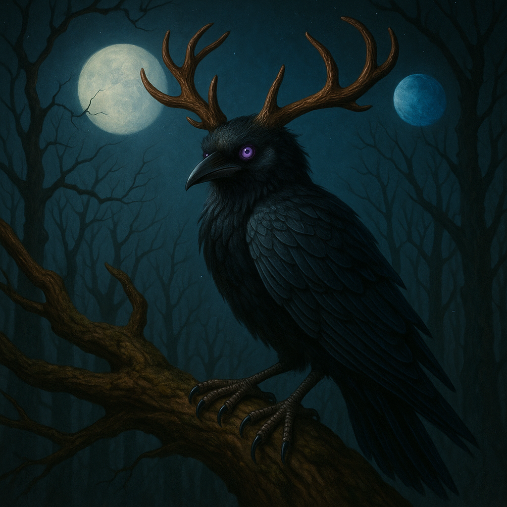 The Stagraven is a creature of striking duality, blending the cunning of a raven with the resilience of a stag. Towering over common corvids with its eagle-sized frame and sharp antlers, it dominates the skies as an unmatched aerial predator, wielding its horned crown as both a weapon and a symbol of supremacy. Its feathers, so black they shimmer with the faintest hint of deep violet, grant it an almost spectral appearance, further tying it to mysticism and shadow. Revered among the Shadow-Elfese, who share its antlered form and elusive nature, the Stagraven is seen as a kindred spirit, a being of instinct, intelligence, and silent grace. To those who earn its trust, it is more than a pet or companion, it is a guardian, a scout, and an unflinching ally, bound by something deeper than simple taming. Yet, to those who cross its path unworthy, it is a ruthless predator, an untouchable phantom of the sky, and an enemy that will never forget.