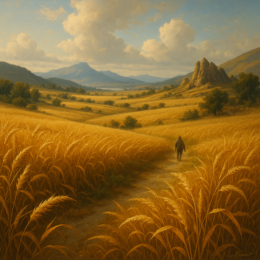 A hundred miles of rolling, sun-hammered fields, the Amber Hills sprawl across northeastern Everwealth like a sea of fire-kissed grain. Nestled between the The Cloudrend Mountains, Lough Icewind, and the treacherous fringes of Boulderrain Woods, this region is a study in contrasts, a place of harvest and hardship, solitude and slaughter. Though dotted with stubborn homesteads and independent farming steads, the Amber Hills remain largely ungoverned and brutally untamed. Its wealth of arable land hides not only roots and crops, but the ambitions of bandits, smugglers, and worse, all of whom lurk amid the maize and the tallgrass, waiting for travelers bold or foolish enough to cross it.Geography
