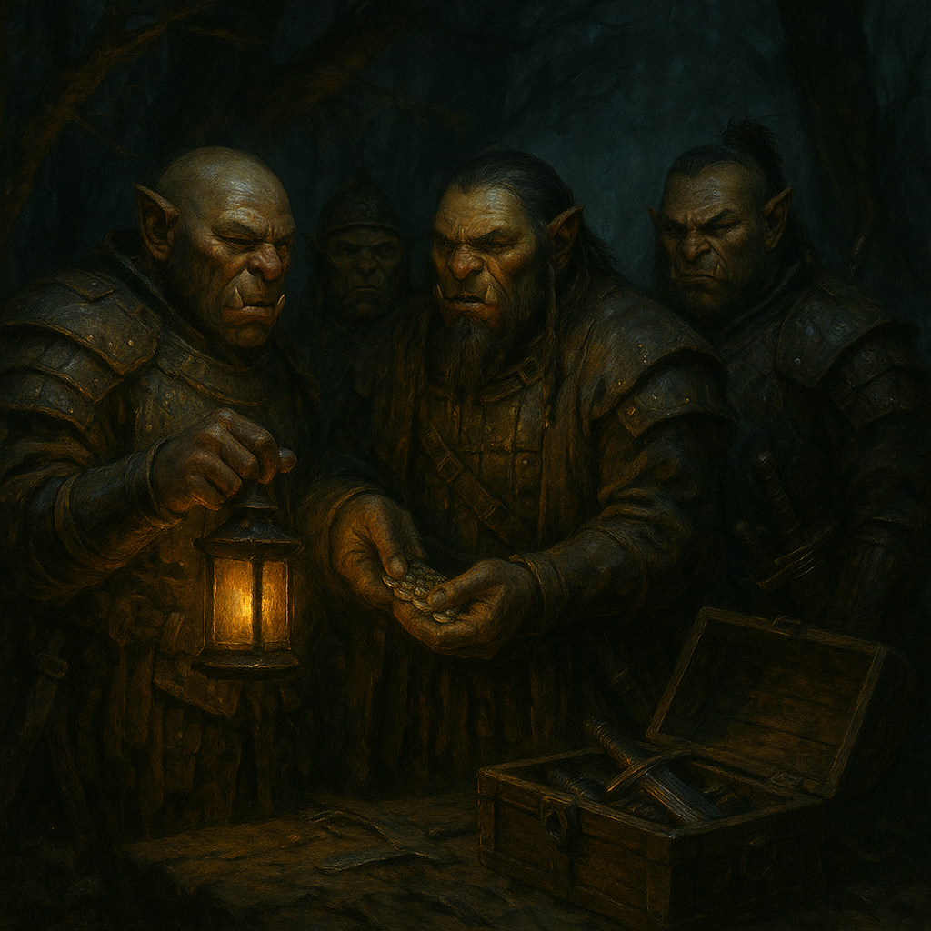 The Orcish Crime Syndicate provides nearly every illicit service imaginable, available for the right price and with no loyalty beyond profit. Arms trafficking remains their most profitable operation, distributing cursed blades, enchanted bombs, and reclaimed Hexsteel to rebel groups, mercenary bands, and corrupt nobles. Potion running, alchemical reagents, and recreational narcotics, many made from Everwealthan black-market herbs, are sold in bulk to border settlements and underground circles. Mercenary contracts, assassinations, and retaliatory raids can be arranged quickly, usually through coded orders or vagrant intermediaries. Other services include documentation forgery, debt labor transportation, black-market spell scrolls, and information brokering, especially intelligence on troop movements, noble scandals, or Elfese trade routes. When hired by Everwealth or Kibonoji officials under the table, the Syndicate also specializes in discreet political interference and banditry-by-design. For the desperate or morally bankrupt, the Syndicate offers war without war.