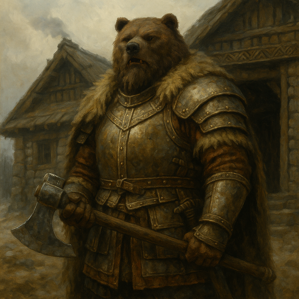 The Ursi are a woefuly powrrful, hardy race descended from shamanic coastal cultures of Omendahl, a nation along the northern regions of old Tarmahc that too birthed Humans and Giants unto the world; Where ethics and empathy despite it's millenia of societal progress, to its dying day weighed, for lack of a better word, fucking nothing compared to the strengfth of one's arm. Towering and broad, with thick fur-covered bodies and ursine features, the Ursi are often mistaken for brutish beasts, their appearance belying a shrewd, pragmatic people with deep spiritual roots. Born of coastal raiders, fire-singers, and frost-clad ritualists, the Ursi were once second-class citizens in Tarmahc's final days, seen as temperamental laborers and unrefined warriors. But when The Fall shattered the continent and sent kingdoms beneath the sea, the Ursi did not flee with the others toward the soft shores of Chikara, the Elflands soon-to-be Everwealth. They sailed, into uncertainty and ice, and arrived at the war-torn land of Kathar, the Ursi found the Orcish and Canid peoples locked in a bloody struggle with the Dwarfish strongholds that clung to the mountains. The land was cruel, its people in disarray, but an offer to secure a future within it became very clear. Ursi chieftains proposed a pact with the Orcish leaders, their strength and resilience in exchange for a place among the victors and a cut of the spoils. This "Hand for Land" agreement forged one of the most enduring alliances in Katharan history. Ursi warbands helped breach the Dwarfish defenses, marking the beginning of the "Dwarf Dusk" that would exile the Dwarfs from their homes to the north. In scholarly circles, this moment is often cited as a domino that set The Great Schism in motion, the Dwarfish exiles meeting the Tarmahc refugees soon after their defeat in Kathar, forming an alliance that eventually lead to the rise of Everwealth itself. Now, centuries later, the Ursi remain a cornerstone of Katharan culture. Their communities blend into the rugged frontier, their longhouses wreathed in smoke and snow. Though many view them as slow or simple, the Ursi are nothing of the sort. They are deliberate. Patient. Brutally effective when they act, but only when necessity demands. They have little love for lofty ideology or the formalities of southern courts. Survival, to the Ursi, is its own philosophy, and those who ensure it, by any means necessary, are never wrong. Though most Ursi live in the north, a number migrated with Human, Smallfolk, and Half-Giant refugees toward Chikara or south into Everwealth's heartlands, where they are now a common sight in many border towns and military outposts. Rarely scholars, politicians, or mystics, Ursi are instead known as stalwart laborers, blunt bodyguards, unyielding warriors, and iron-willed survivalists.