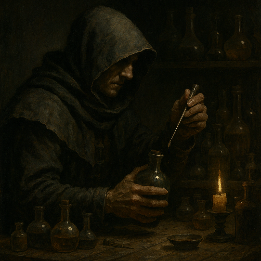 Potions are the alchemical wonders of Everwealth, liquid manifestations of magick and science that promise everything from healing to destruction. Each brew is a testament to the ingenuity, or recklessness, of its maker, with recipes ranging from simple herbal remedies to volatile concoctions infused with arcane energy. Healing Potions are among the most coveted, capable of mending wounds and staving off death, though their potency often depends on the skill of the brewer and the rarity of the ingredients. Beyond healing, potions can grant temporary enhancements, speed, strength, or heightened senses, but these boons come at a price, as poorly mixed elixirs can leave drinkers with debilitating side effects or worse. In a land shaped by scarcity, the ingredients needed for potent potions are as prized as gold, with traders risking their lives to gather rare herbs, monster ichor, or magickal crystals from the frontier lands. The most sought-after potions are relics of The Lost Ages, their recipes lost to time, and their effects unmatched by modern brews. However, these ancient elixirs are not without danger, as their expiration can transform their benefits into deadly toxins. For every effective potion, there is a counterfeit or failed experiment, sold by charlatans to desperate folk who gamble on the promise of relief. Despite the risks, potions remain an integral part of life in Everwealth, serving as both lifelines and weapons. From humble tinctures brewed over a village hearth to deadly poisons mixed in shadowy corners, potions embody the precarious balance of ingenuity and survival. In a world as unforgiving as Everwealth, a single vial can mean the difference between triumph and tragedy.