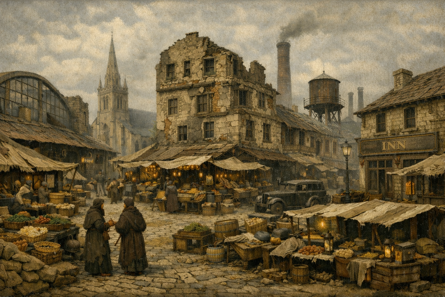 While by no means lacking in unique personalities, the humble hobbles and close-knit communities across the kingdom otherwise leave much to be desired. It is hard to over-state how far society has fallen in the aftermath of the Schism, and that long, painful fall from glory is reflected no more clearly than among Everwealth's ramshackle thatch houses in the company of its common townfolk. As what history is still recorded demonstrates, a land where once stood rich markets, plentiful work with medicines so potent and magicks so powerful things like aging and disease were an afterthought; Now live folk in a perpetual state of desparation from the minute they are born. Their families poor from lack of labor in their over-populated settlements, scarcely afford to eat much less afford the cost of resources needed to make a sometimes many weeks' long journey on-foot over incredibly dangerous roads to search for other opportunities a town over that may not even exist; More often than not without a, qualified, cleric or doctor to heal their sick and injured for miles, few and far between shipments of goods, even growing one's own food a challenge, as their homes frequently rest atop infertile former battlefields of the Schism, yet they are bound to them as their settlement's security is maintained by the fact it's conditions are so inhospitable, you would be a fool to covet them.
