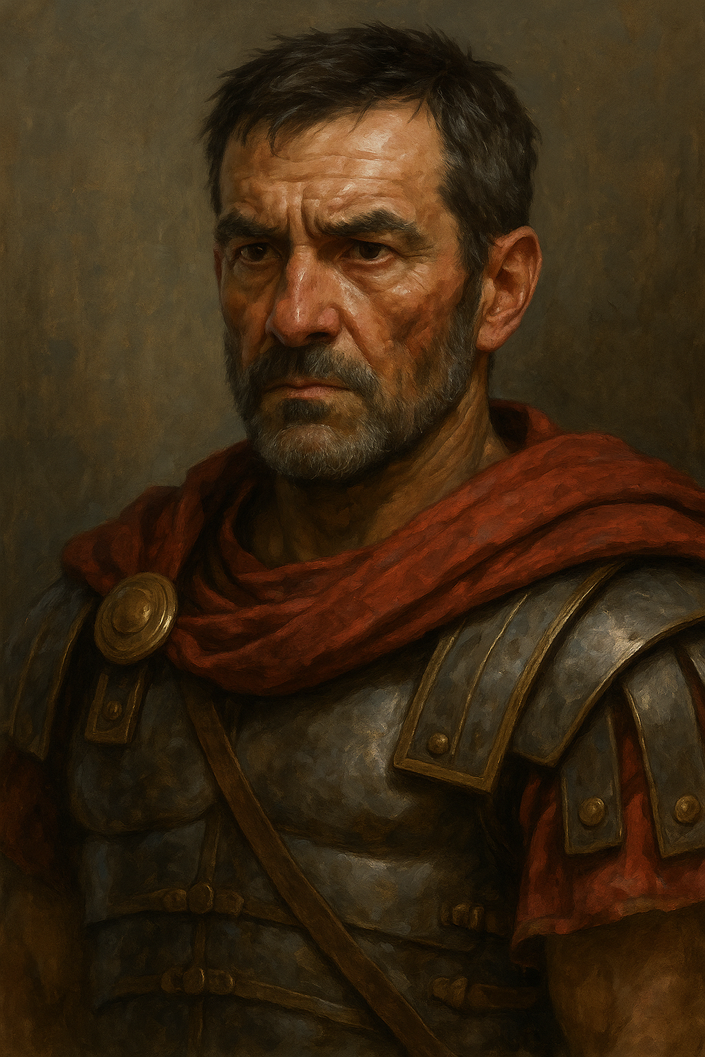 Even in full regalia, Marcus Valerius Draconis looks less like a lord of the Empire and more like its sentinel—armoured not in splendour, but in the credibility of a life lived on the line he asks others to hold.