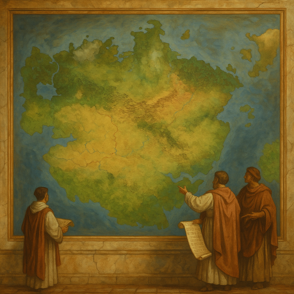 By the time the Roman Nova Province arrived eight centuries ago, the Magnus Confluxus was already a continental mosaic of disparate realms bound loosely by geography but not yet by diplomacy or law. The Rift tore open above the provincial capital, fields, and surrounding villages, carrying nearly two hundred kilometres of Roman territory into a land where nothing fit the patterns of the old Earth. Yet unlike many before them, the Romans brought not just people and land, but institutions: legions, laws, magistrates, engineers, merchants, and scholars. Their arrival marked a turning point in the continent’s history—not through conquest alone but through the steady imposition of structure upon a world that had previously existed in loosely overlapping circles of influence.