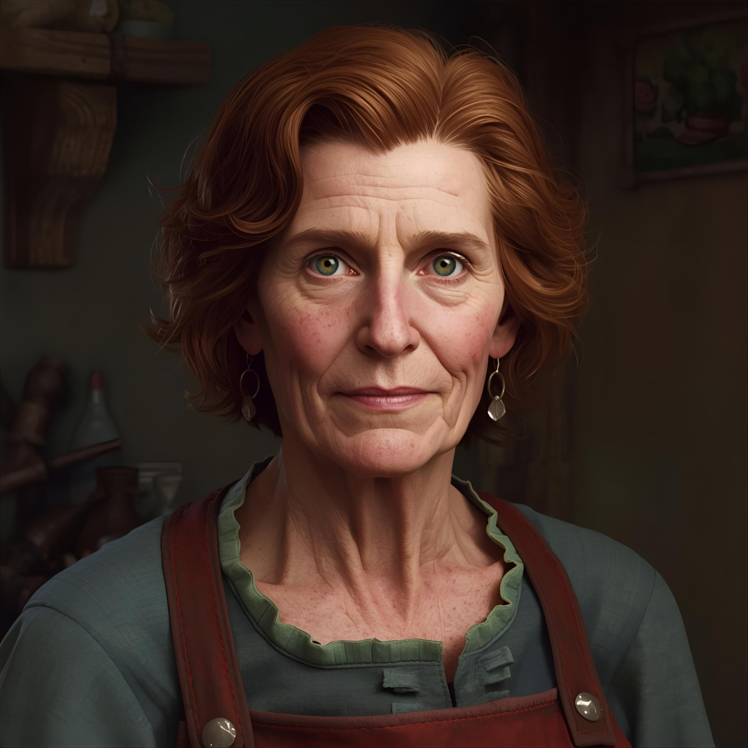 Winnifred Houtblad is een 90 jarige oude vrouwelijke innkeeper.