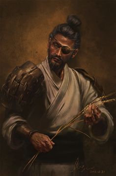 Usa um tapa-olho no olho esquerdo, perdido por um golpe de espada.