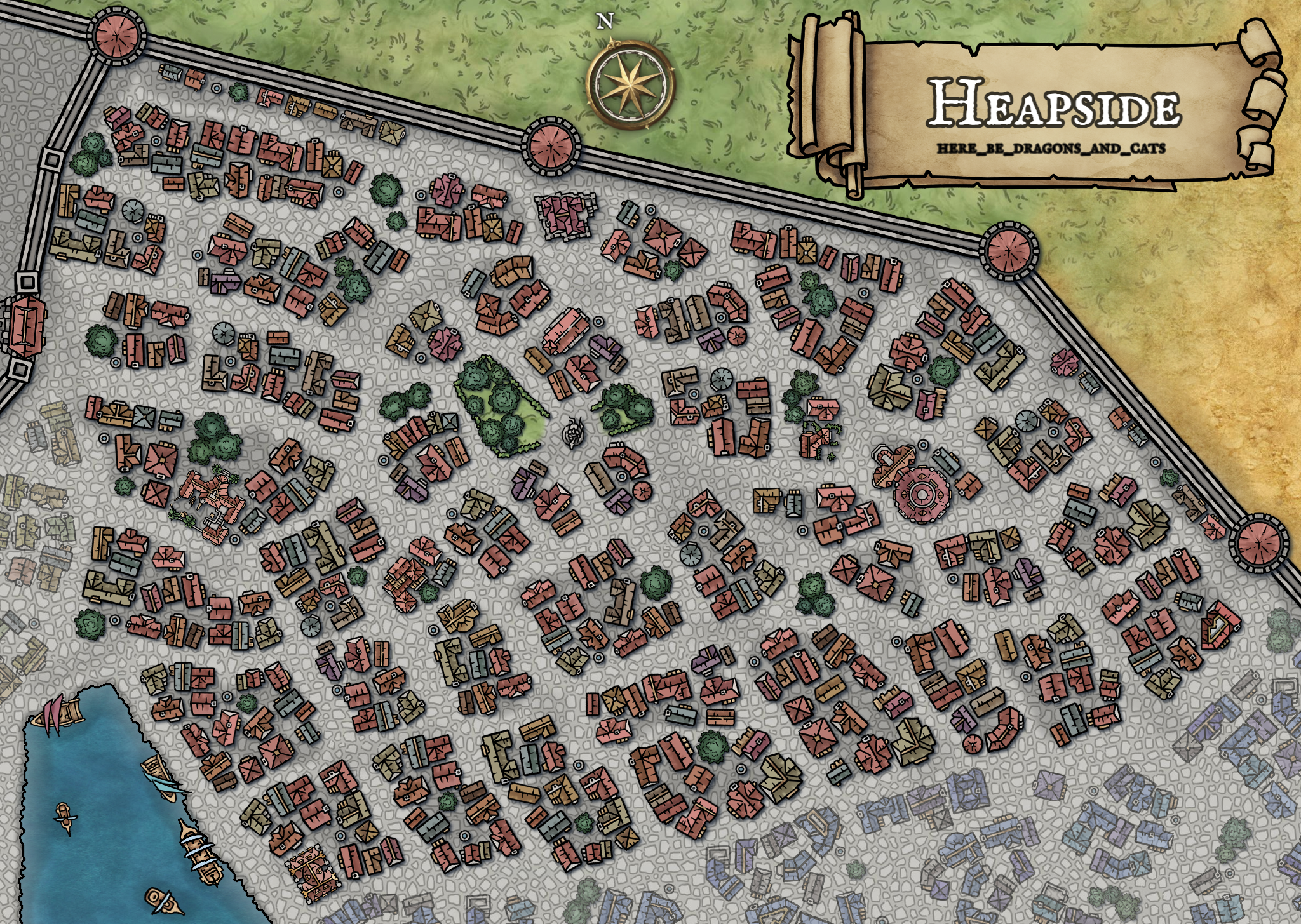 - Heapside: The trade center of the Lower City, filled with markets and workshops.