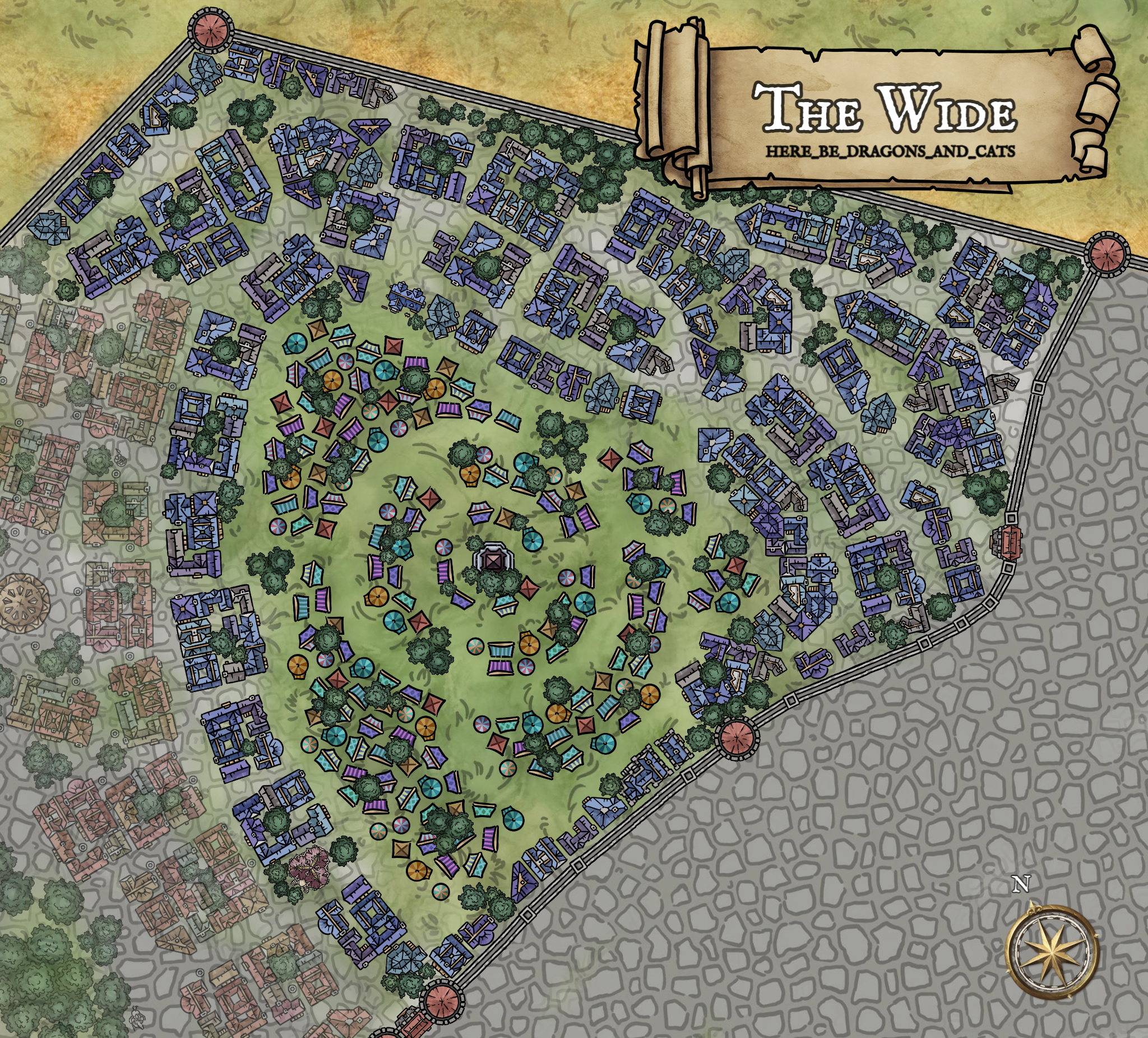 - The Wide: A vast open marketplace, hosting traders, performances, and grand gatherings.