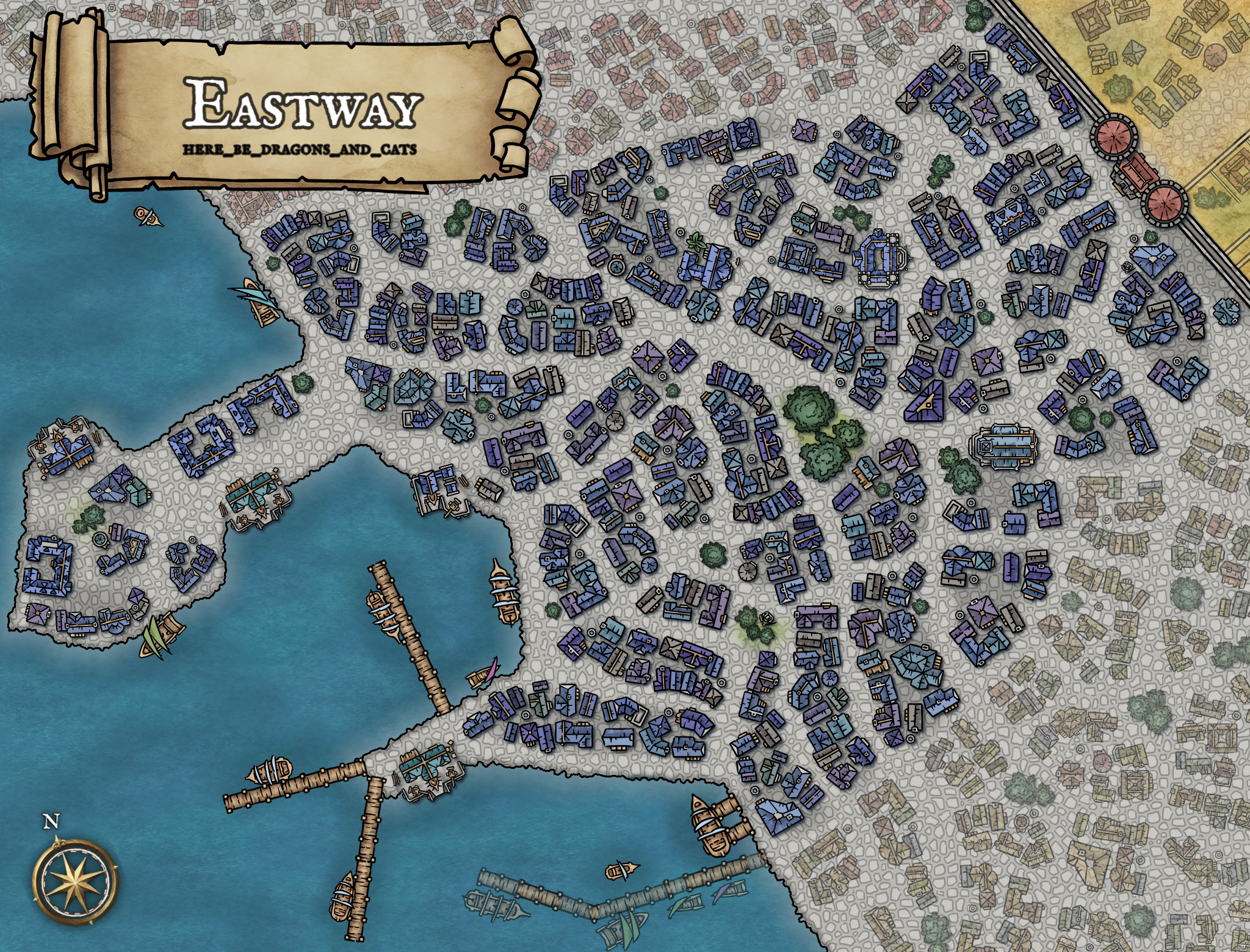 A dockside neighborhood filled with sailors, laborers, and fishmongers. Known for its chaotic streets, constant noise, and the strong smell of salt and fish. It’s rough but vital to the city's maritime trade.