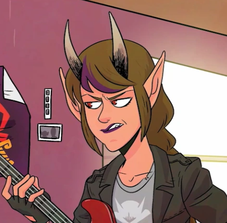 Fig is a tiefling bard who believed she was an elf for most of her life. She was a very bubbly, traditionally feminine girl until her horns started to grow in, after which she became very rebellious and unreserved. She loves all three of her parents very much, though it takes some time for her to get there. She's very impulsive and often gets carried away in the disguises she uses.