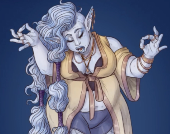 Music Instructor that's always keen on taking a nap, is always relaxed and appreciates every student interested in music. She has long blue hair with one side shaved. She wears a long gown.