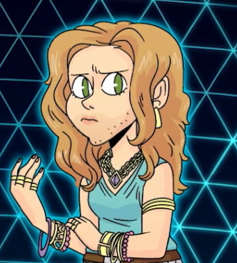 Ostentatia is a dwarven cleric. She has sideburns that go down the side of her face with wispy strands along her chin. She is extremely bejeweled and wears jewelry everywhere. In Fantasy High, Ostentatia is a kind girl, sort of popular in the Academy. Her family is working class, but they own a pretty decent-sized home with a pool, and Ostentatia is often bedecked with jewels. Her father loves her very much.
