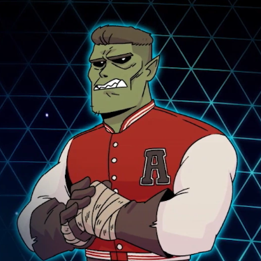Ragh is a huge, beefy-looking half-orc barbarian. He's a member of the Owlbears.
