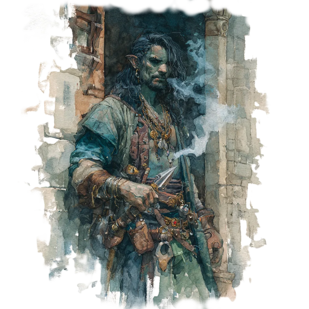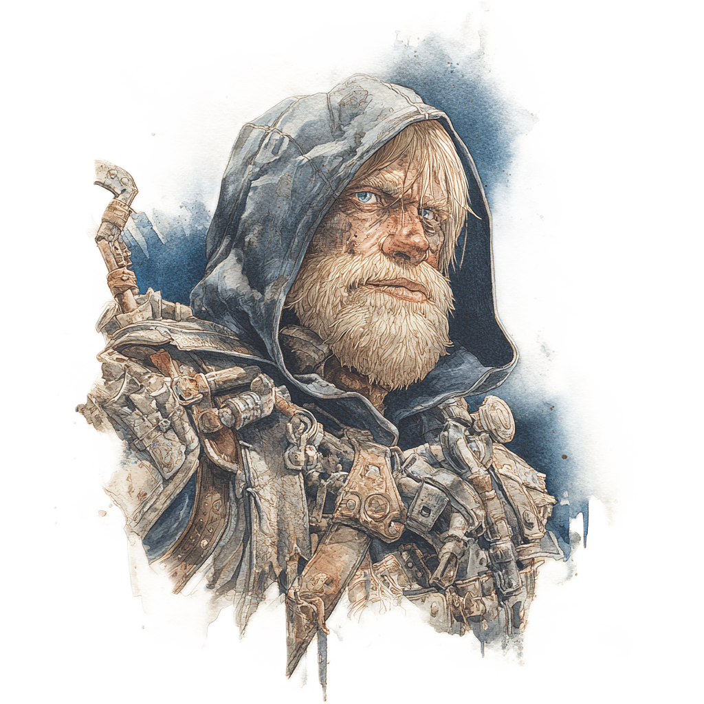 When he joined the group, he was a man already half-buried, hiding behind smoke, soot, and addiction. Yet little by little, they uncovered what lay within: a heart stubbornly golden, and a mind sharp as any blade. He began as a rogue, surviving by guile and shadow, yet in time he turned back to his craft. If you ask me, it was the strange things they uncovered together that lit that spark again. And once lit, it burned bright. From broken relics, Gus built wonders. Out of wreckage, he made hope.