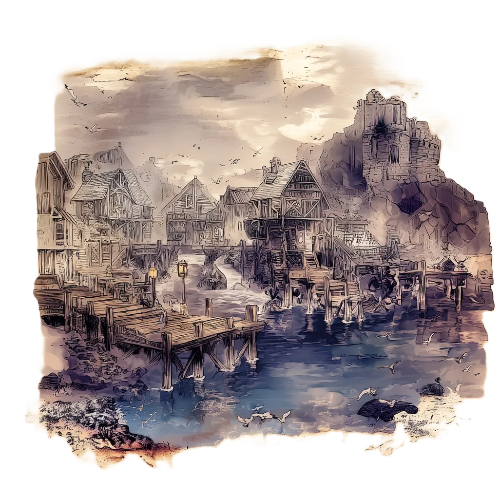 Now, you’ve heard of Riddleport, the city that stinks of smoke and secrets. That’s where he found his uncle: Captain Scarbelly, a man with salt in his veins and blood in his prayers, the kind who’d sell his own shadow if the price was right.