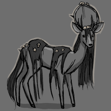 SP1 or as colloquially known, Moon-thief is a creature that can appear to some as mythical deity but is in fact incredibly dangerous to interact with. Its likeness is often compared to a deer, moose or horse as it has a set of four long spindly legs, a large stocky body and antlers that form a circular shape which comes across like a ring.