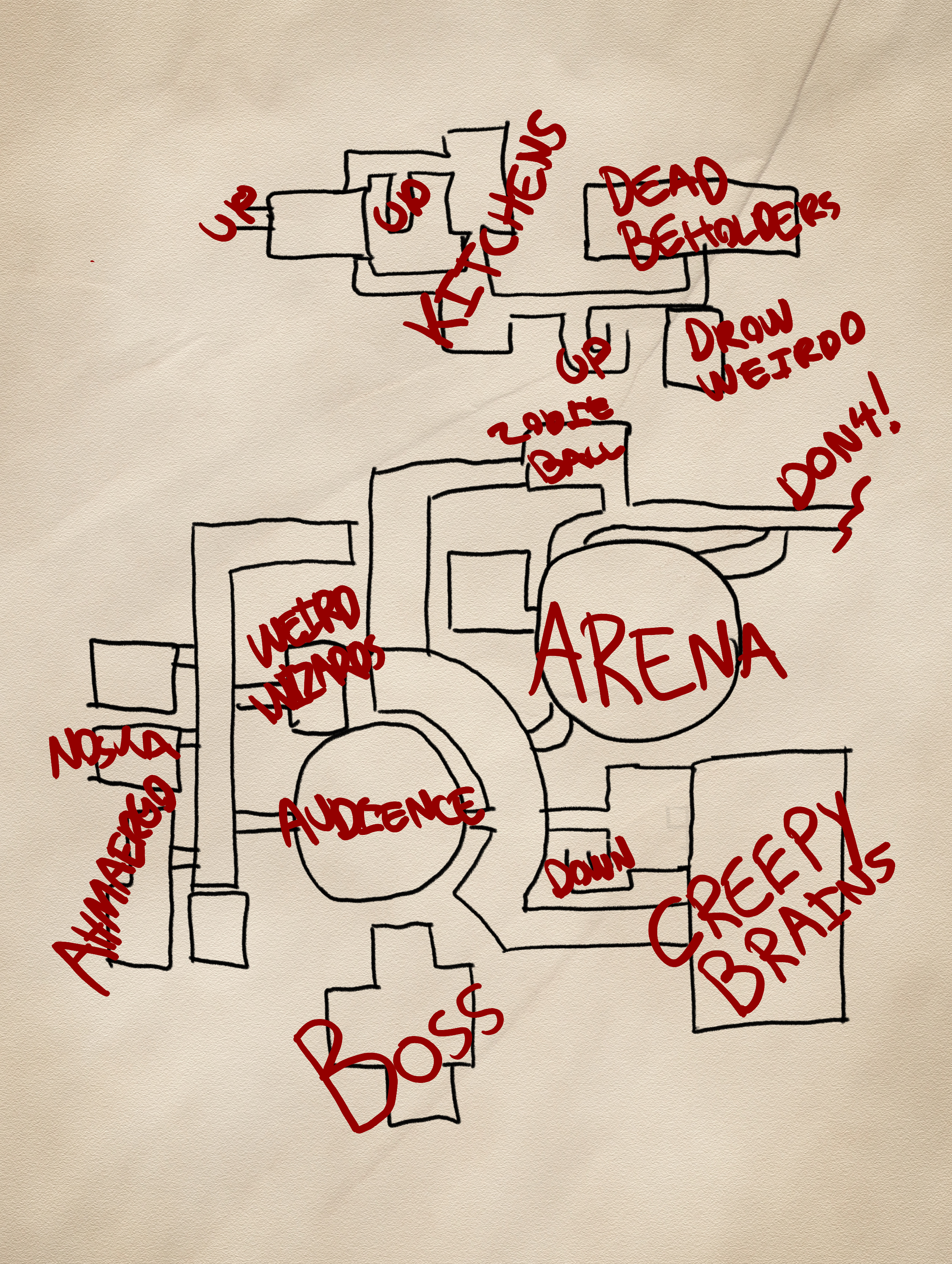 Salles terminées des quartiers privés : accès aux égouts, hall, laboratoire, autel, 1 chambre à coucher, 1 salle de bains