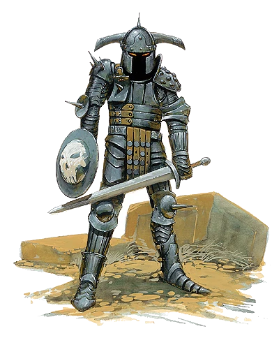 Elle est devant une table sur laquelle est posé un plan griffoné, elle est entourée de 4 malfrats, une armure métallique animée par magie, et un barman derrière s'occupe du bar sans se préoccuper de la situation. De l'autre côté de la pièce, un nain duergar gît mort au sol. Un cinquième malfrat, qui a ouvert la porte, est proche de Duroc.
