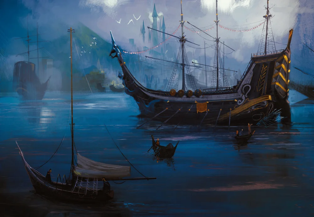En ce matin du 30 Ches, l'équipe va au port, au Carnaval des Sirènes, attraction principal des festivités de Flottesillage, célébrant l'arrivée du printemps. Baril détecte un petit point de magie d'abjuration dans la cabine du pont supérieur à l'arrière des 2 bateaux, et détecte que toute la scupture elfique à la proue des 2 bateaux brille d'une puissante aura d'illusion. Ils montent sur l'un des deux bateaux, l'Agitateur (Hellraiser). Un matelot indique que leur capitaine, Fergus Crabwater est généralement en train de boire du vin dans la taverne de plein air qui est montée près du quai le temps des festivités.