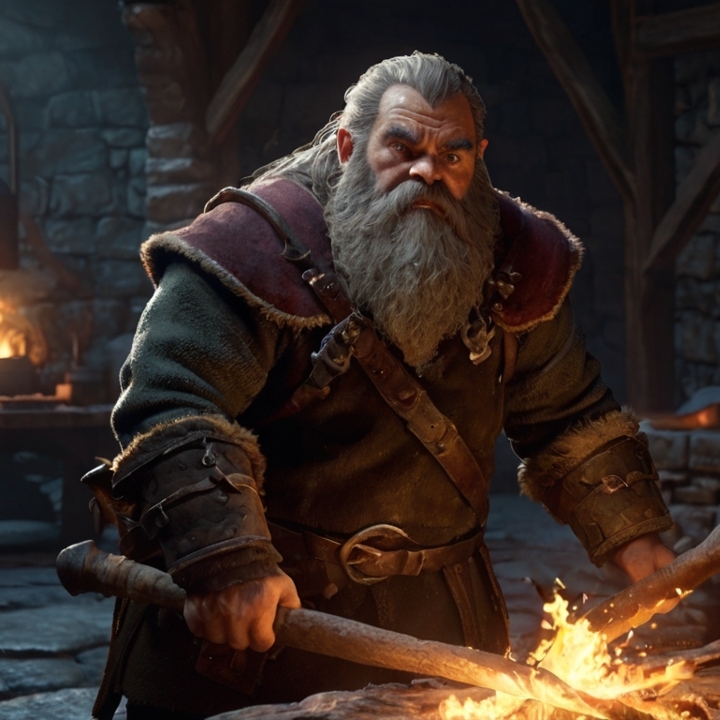 Bourru mais bienveillant, il est du genre à râler en permanence mais cache un cœur tendre. Il croit fermement en la valeur du travail et de la famille. Grumli est un Forgeron de renom à la retraite.