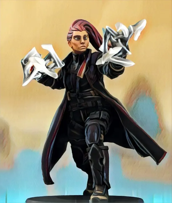 A seemingly normal figure, save for the horns that curl above her forehead, seen to wield a strange crackling magic.