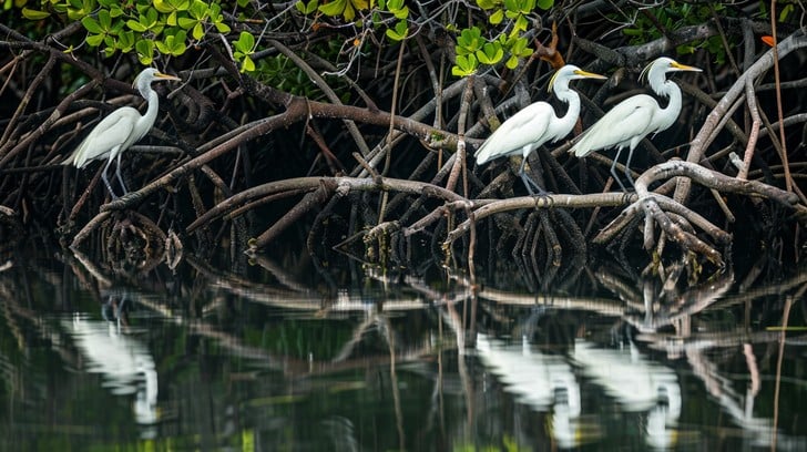 A species of cat-like animals prowls the upper branches of the mangrove trees and prey upon the unwary in this game-rich environment.