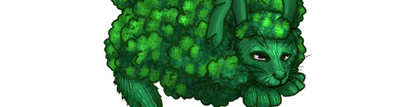 Resembling a tiny crown of broccoli with a head at one end and a leafy tail at the other, this Florabeast has been prized since antiquity for its small size and docile nature, making it a perfect complement for any lady's style, from lofty nobles to common folk. Zoobotanists believe that their large eyes and tender natures awaken a deep maternal instinct in even young girls, who want to ensure they are cared for and watered regularly.