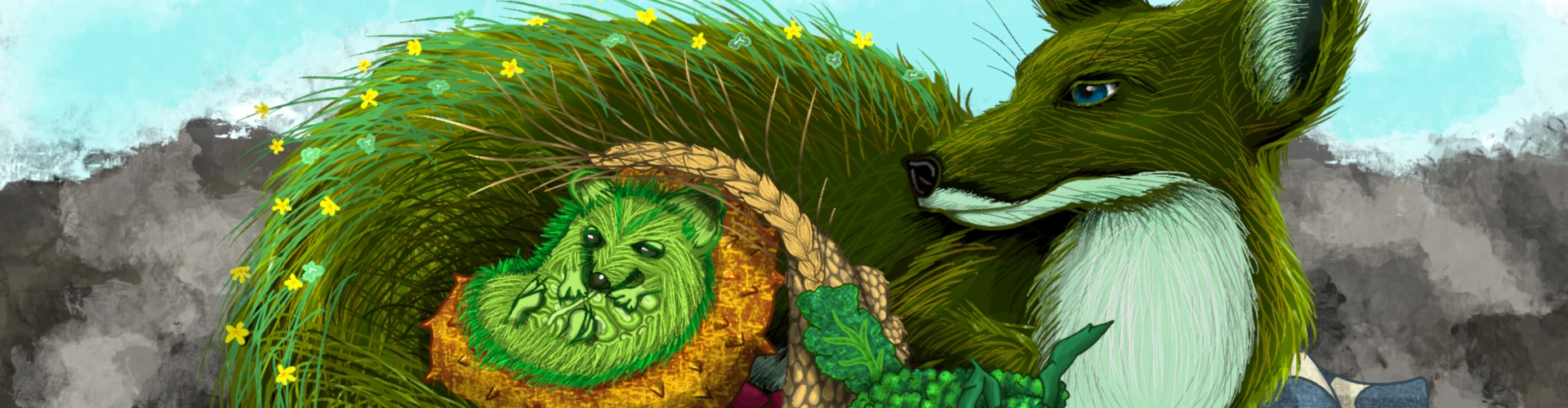 Supper was had with the usual ceremony. A yellow-flowered Foxalis showed up to Pa's side with a grouse in her mouth, so he dressed and fixed it to be added to the supper of fried onions and hot oilcakes. Dessert was blackberries over hardtack, the sweet juice making the rock-like bread into a passable cobbler. Caleb sat on his stool, Helena the Hedgehorn by his side. Felix worked on his whittling, while the girls used the last of the daylight to sew. Donald got out his harmonica and filled the glade with songs from their last home.