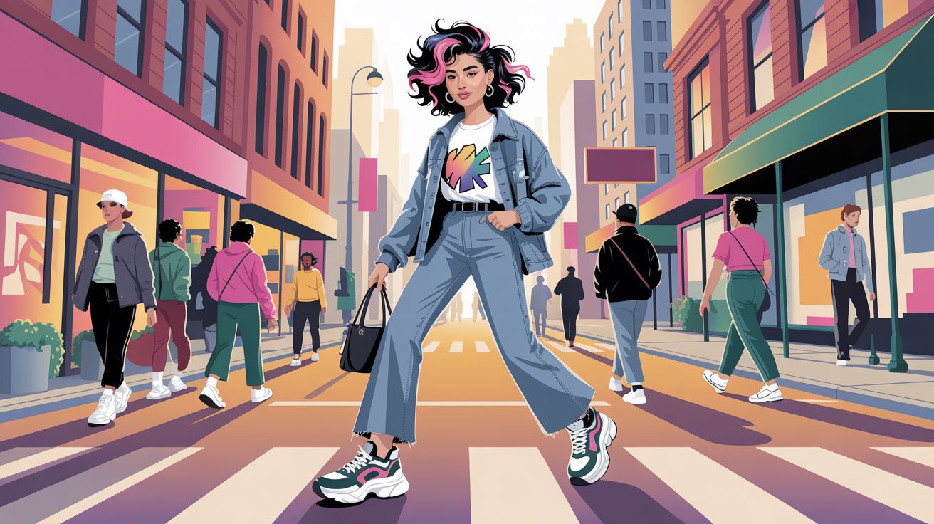 You'll see suits, uniforms, casual wear, and sportswear everywhere. Denim becomes universal. Synthetic fabrics appear. Printed logos mark brands and identities. Hairstyles range from completely natural to extreme artificial styles. Hair extensions and wigs are available to everyone, not just the rich. Subcultures use fashion to signal their identity loud and clear.