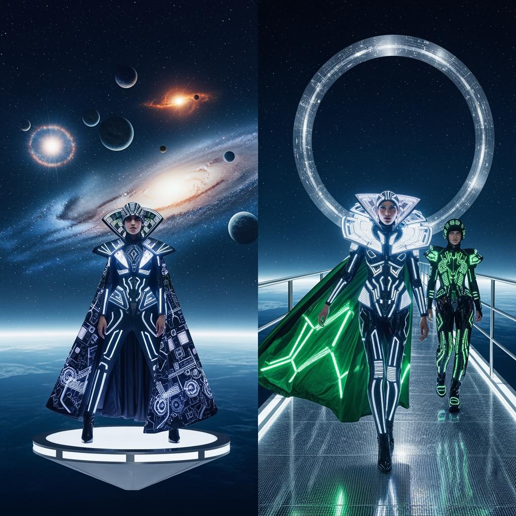 Materials don't exist yet in our world - think memory cloth, living fabric, or energy weaves. Outfits are designed for low gravity, radiation protection, or multi-species environments. Wigs and hair extensions might be organic, cybernetic, or holographic. In complex societies, style becomes a political statement.