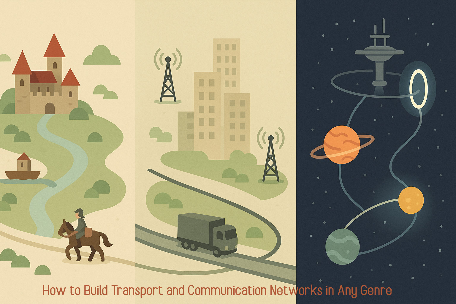 Every world needs a way for people to move and talk. Roads, rivers, messengers, trains, ships and starports. They all help your world feel real. They shape trade, travel and culture. They also give you many chances to create drama and story.