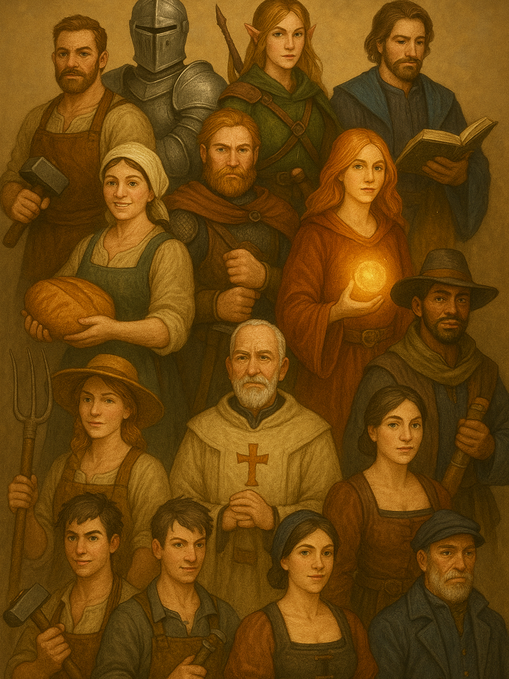 Gaia is a mystical realm forged by the elemental forces of Fire, Water, Earth, Air, and Spirit, under the guidance of the celestial entities Auralians (Light) and Umbra (Dark). Its vibrant landscapes range from fiery mountains to icy tundras, sprawling forests, and shimmering seas, each teeming with life and elemental magic.