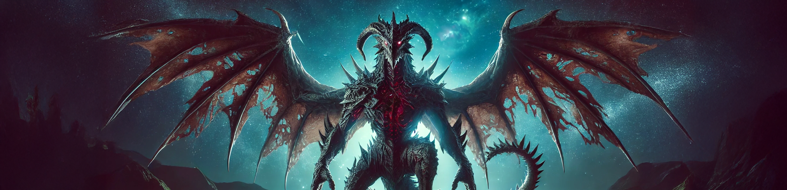- Form: A decayed, skeletal frame draped in rotting scales and sinew; bones blackened by fire and shadow corruption.