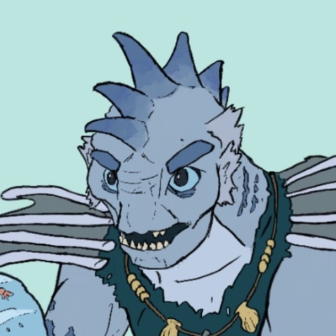 Eelisma carried the look of someone shaped more by tides than by land. Her skin held a faint brine sheen, and the whites of her eyes were swallowed by a sea-green glare that made it impossible to tell where she was looking. Long strands of hair-like seaweed drifts around her as if still underwater, never settling against her shoulders. When she spoke, her voice dragged with a low, tidal pull that set people on edge before she ever raised a hand. Those who met her close enough described the smell of kelp and old storms clinging to her like a cloak.