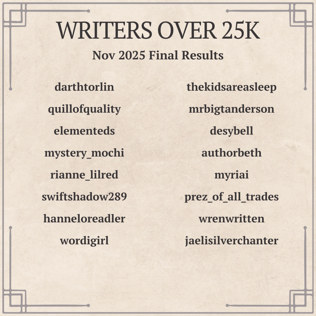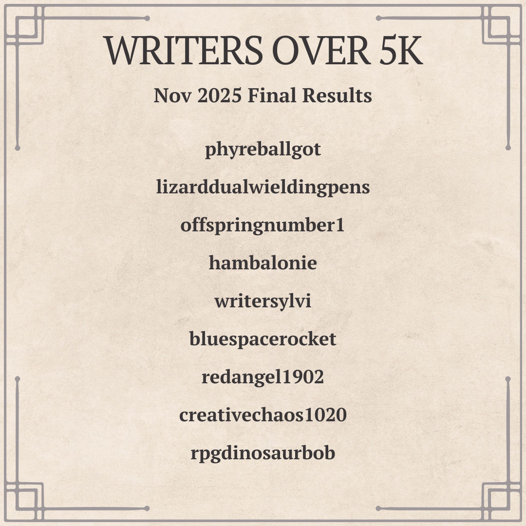 At every results stream, the House with the lowest word count is overrun by the Horde. One third of the House's writers will join the undead horde and are determined by the "Wheel of Doom". The wheel randomly selects the writers from a list of the House's participating members. (Writing for either side, living or undead, is fun!)