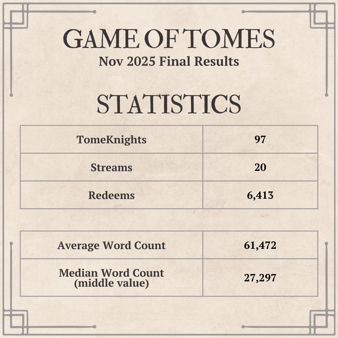 Full rules and word counting instructions are posted on the Game of Tomes (GoT) homepage.