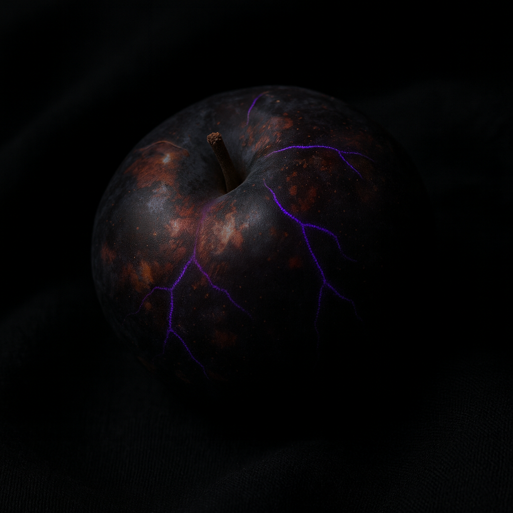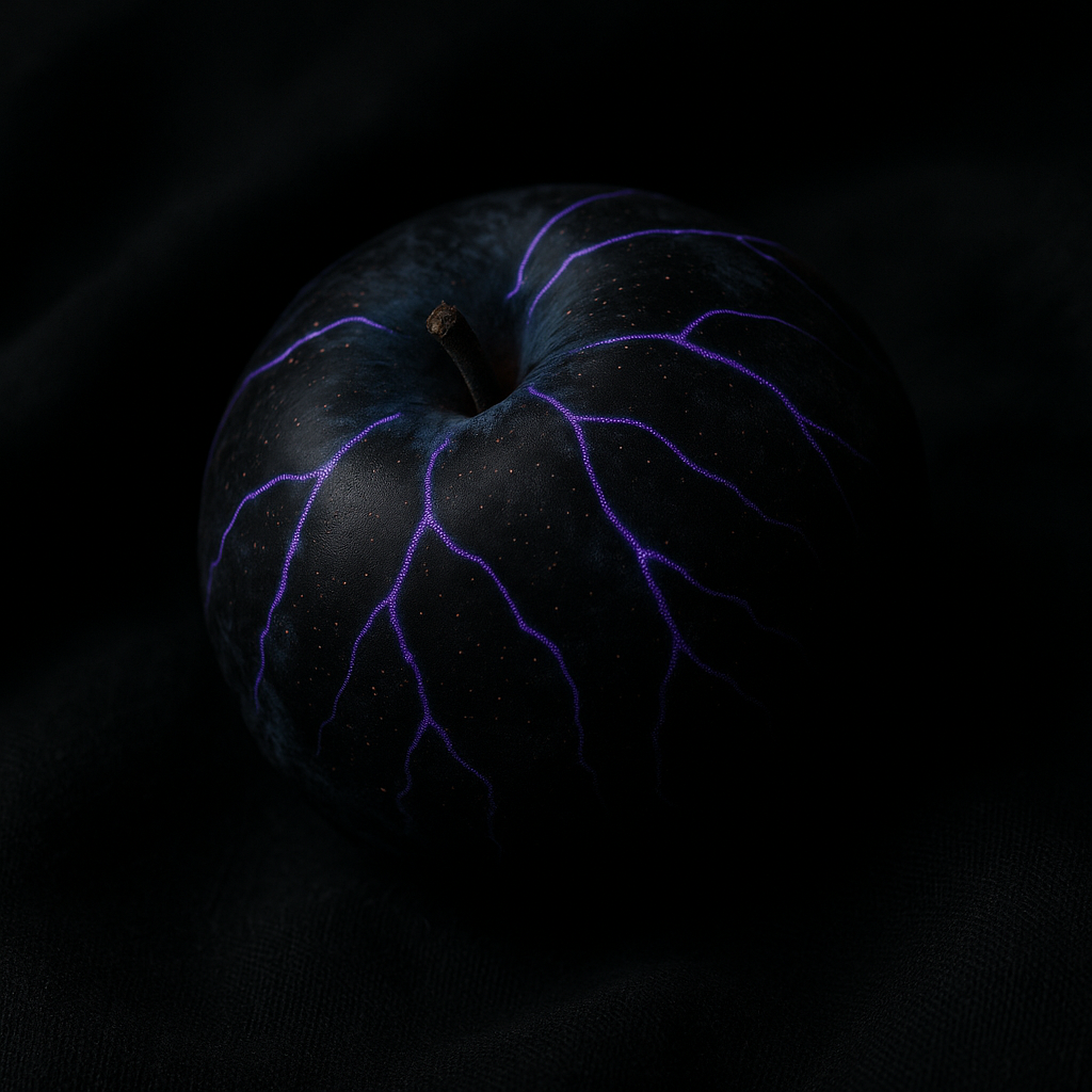 Over generations, some colonies have quietly practiced pit-selection rituals, keeping and replanting seeds only from the brightest-glowing, sweetest, or most symbolically significant fruits, often those chosen as festival offerings or memorial plums. The result is a slowly diverging micro-line usually referred to as Heartseed stock. While visually similar to Obsidian Starveins on the outside, these trees tend to produce fruit with more elaborate vein patterns and slightly more decadent, more complex flavors. Heartseed groves are seldom large; they're often planted near shrines, memorial walls, or old battlefields, producing fruit that is eaten during specific ceremonies or reserved for guests of honor rather than sold freely in markets. - Contraband "Veinburn" Splice – Illegal Enhancement Project