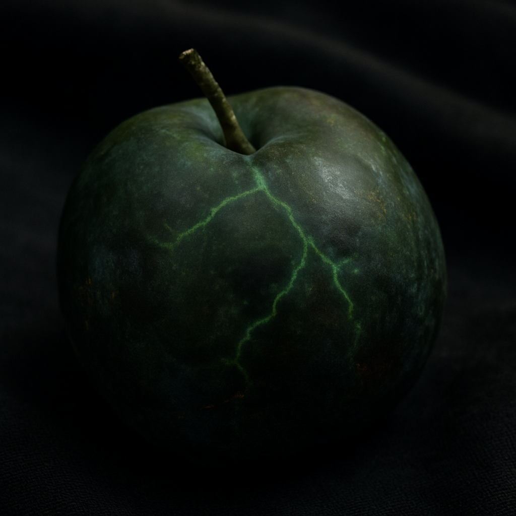 Not all mutations are gifts. The Rotvein Blight is a fungal-pathogenic complex that has emerged in several high-density orchard worlds, corrupting Starvein trees from root to fruit. Infected plums display blackened, over-bright veins that pulse unevenly, sometimes emitting a faint, unpleasant scent of metal and rot even before the flesh collapses into sludge. Consuming blighted fruit causes severe gastrointestinal distress, hallucinations, and, in rare cases, organ damage. Regime authorities treat Rotvein outbreaks as both an agricultural and security threat, enforcing strict quarantines, burning groves, and sometimes using the presence of Rotvein as a pretext to tighten control over "non-compliant" regions.